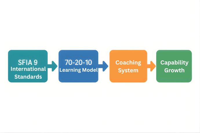 Links experience, collaboration, and formal learning to each SFIA role. Outcome: Embedded learning culture.